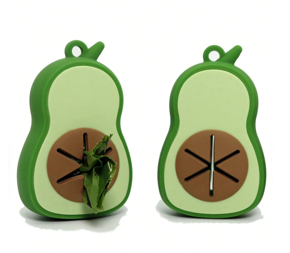 這款酪梨造型狗糞袋分配器採用柔軟耐用矽膠製成