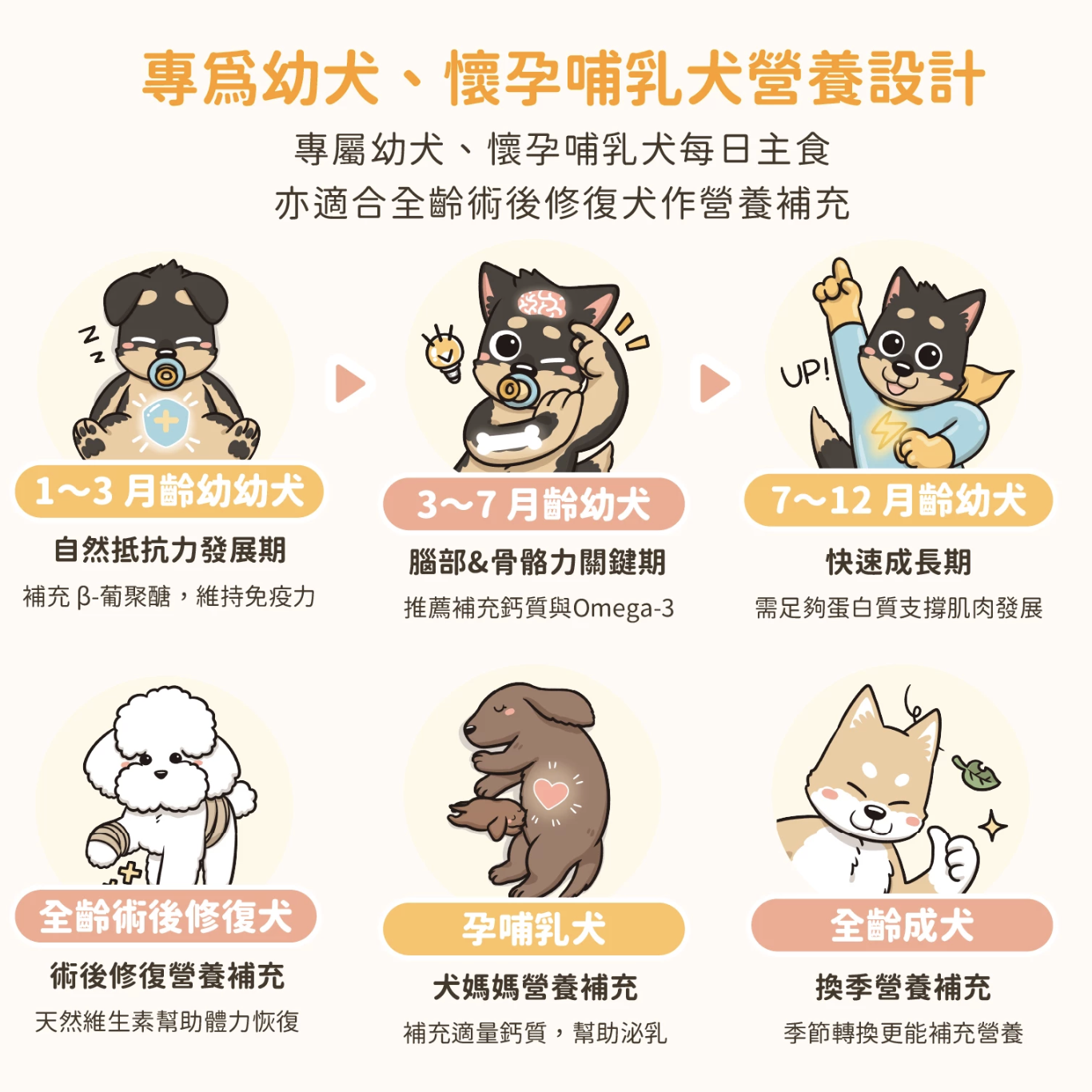 無論是剛斷奶的幼犬、哺乳或懷孕中的母犬