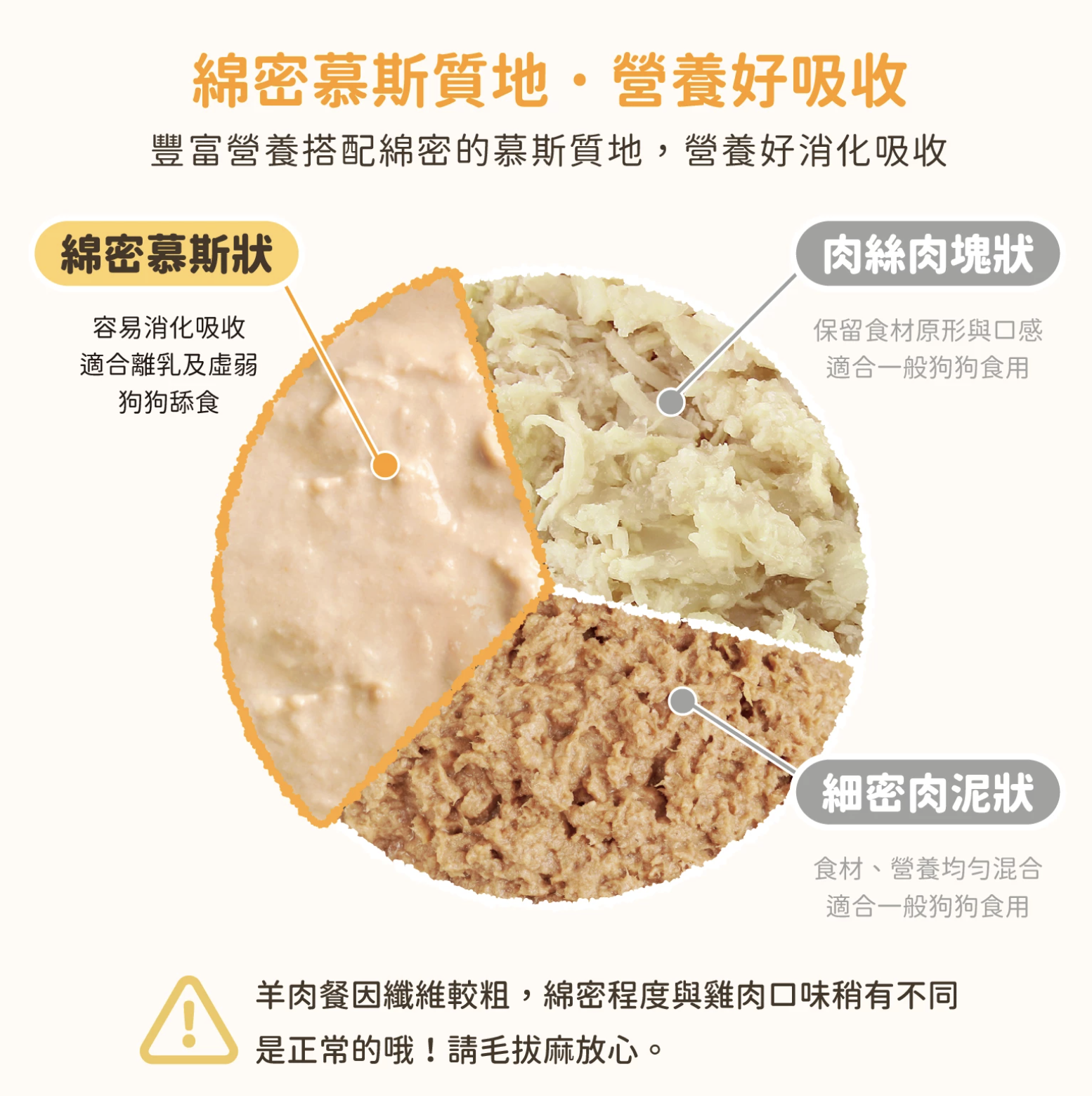 ✔️ 慕斯質地設計:入口即化、易舔食,適合吞嚥能力較弱的犬隻