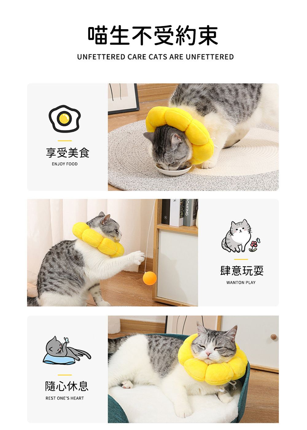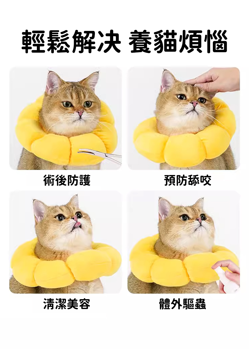 不再需要又硬又大的塑膠伊麗莎白圈,讓你的貓咪自在療傷,不再抗拒戴圈!