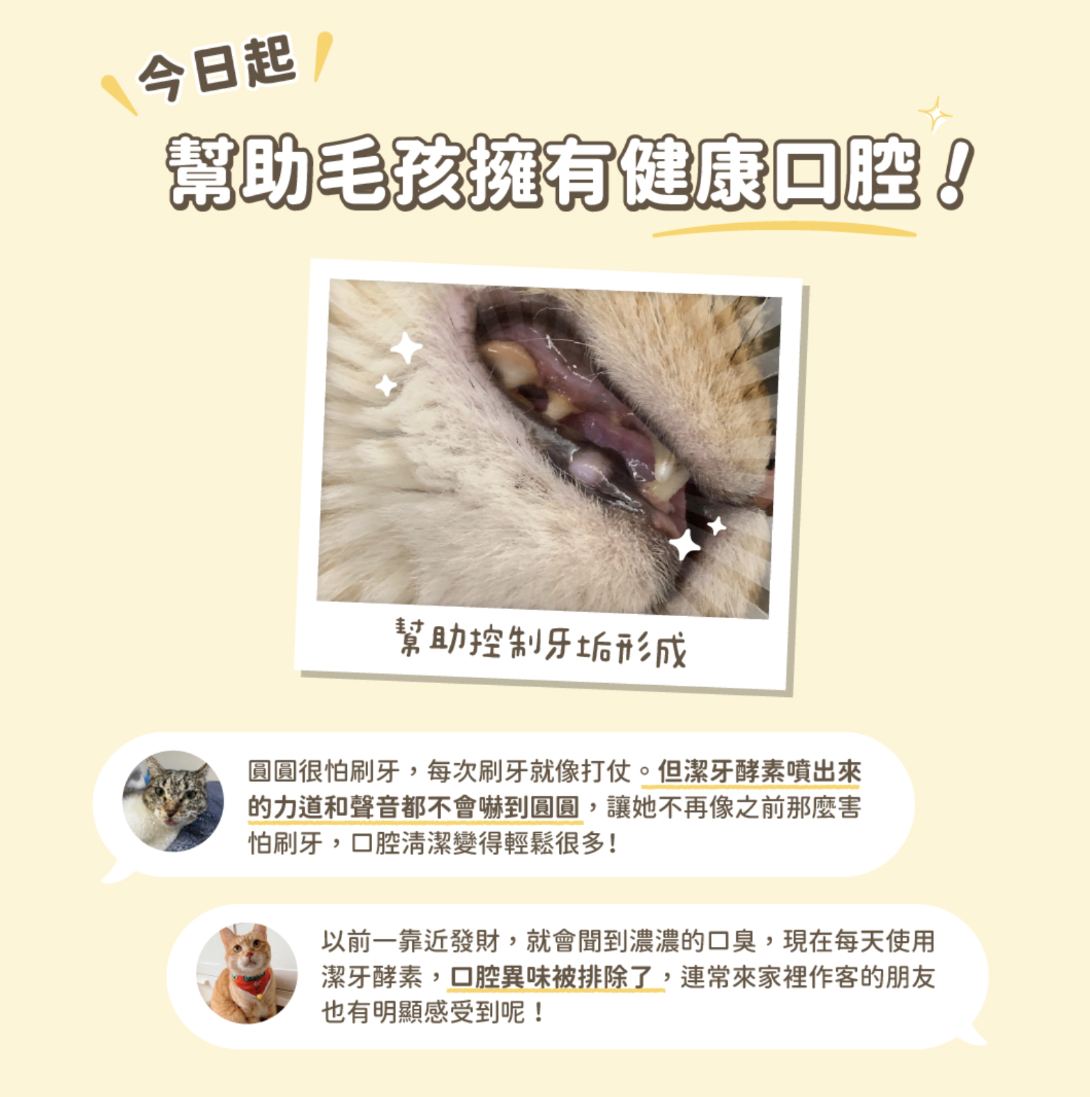 ✔ 容易口臭、牙垢多、不愛刷牙的毛孩