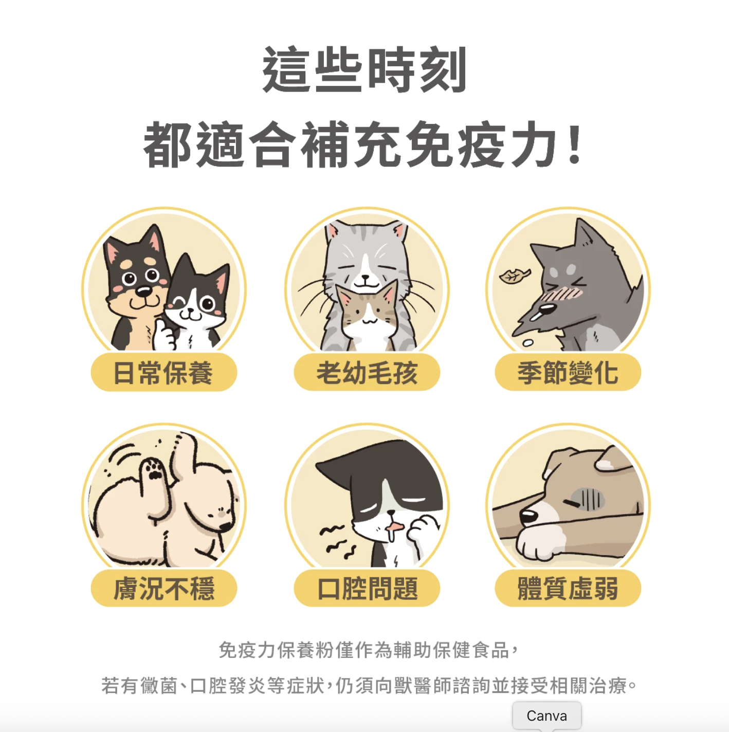 針對免疫力低下、體質虛弱、老年犬貓或幼貓幼犬,也適合作為日常保健補給