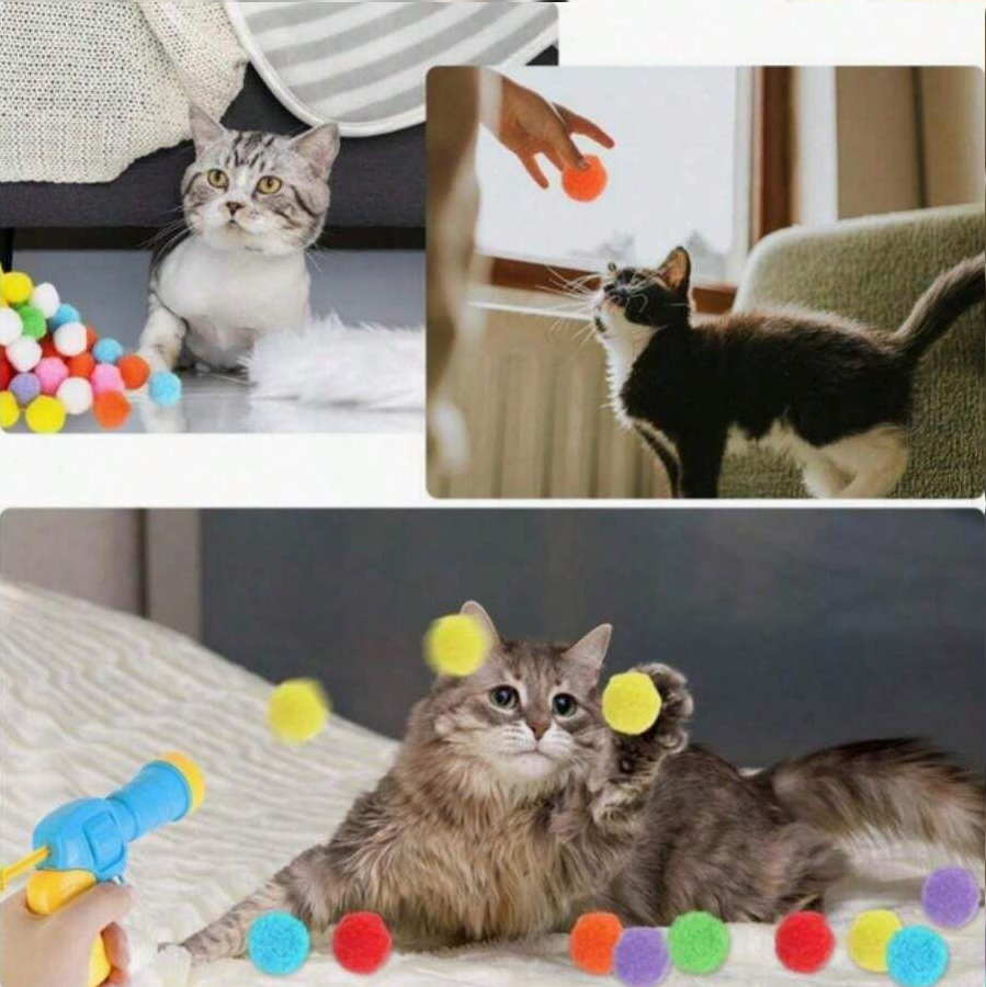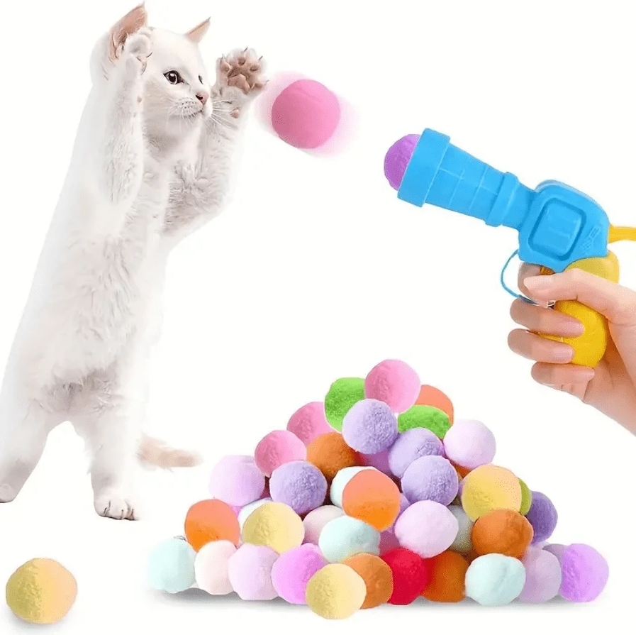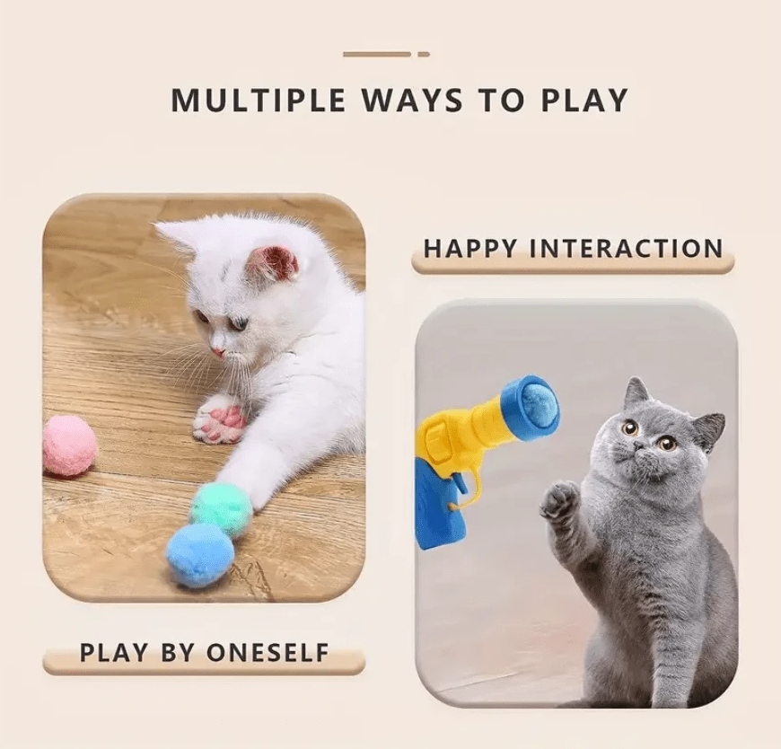 這款【貓咪訓練玩具絨毛球發射器】是一組超有趣又實用的寵物互動玩具