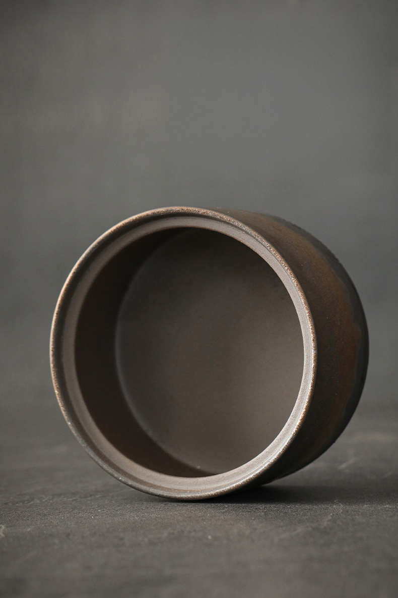 它以長12.9cm、高7.4cm的尺寸巧妙呈現,搭配古樸瑩潤的釉面和做舊工藝,保留了燒製過程中自然形成的鐵鏽黑點,散發出濃厚的陶泥氣息。