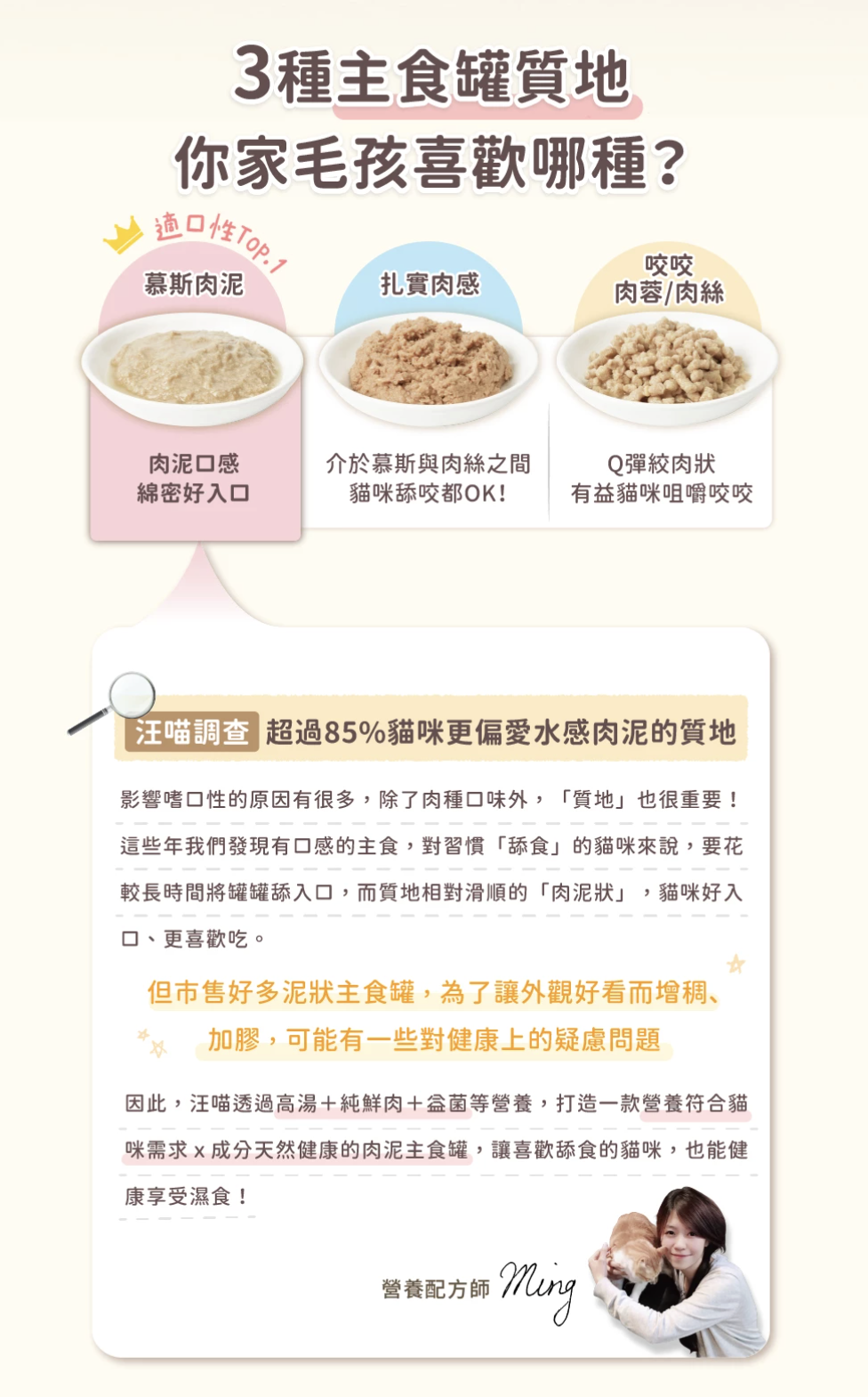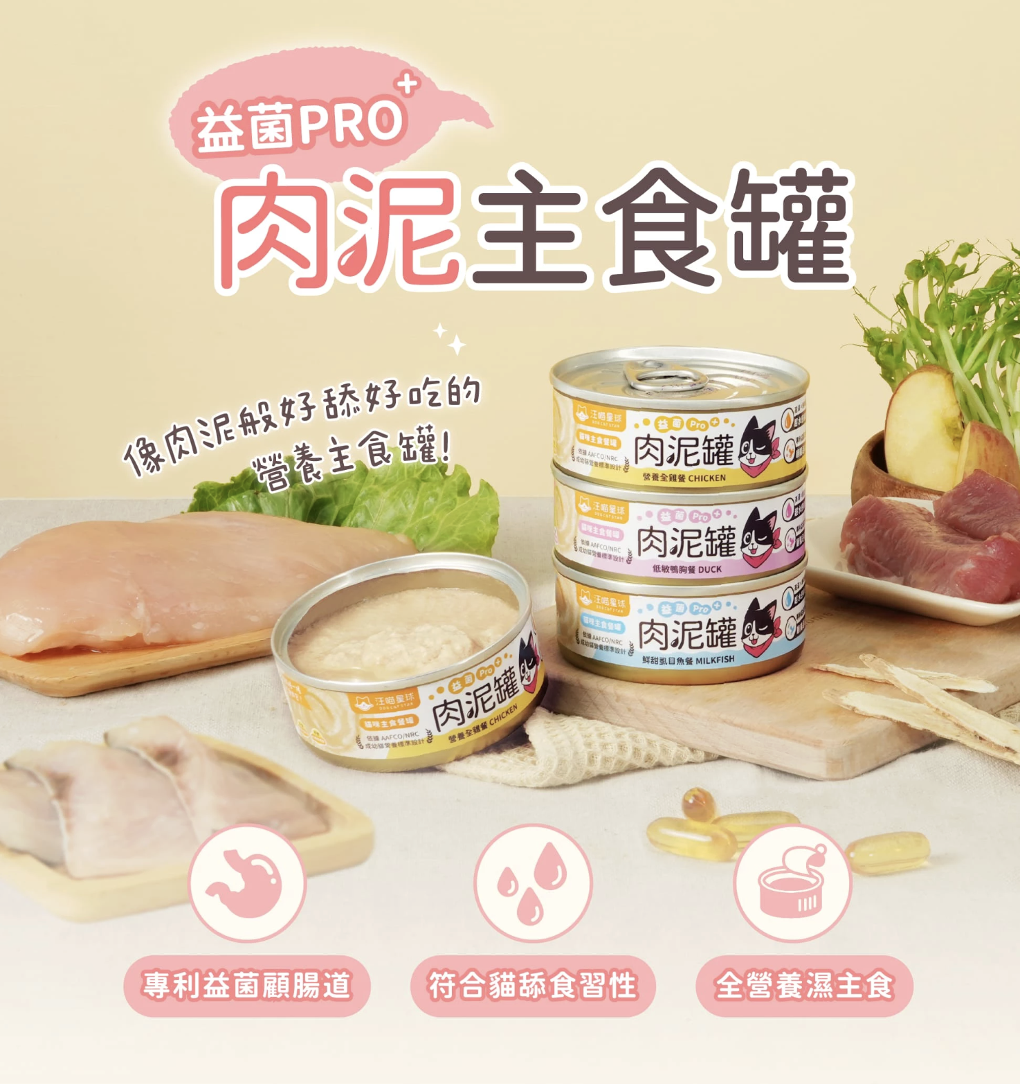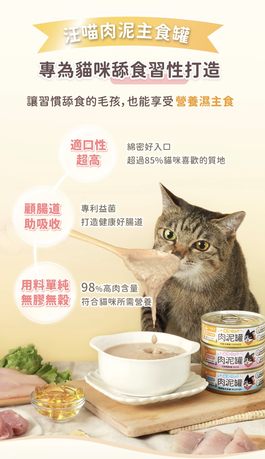 這款「貓用肉泥主食罐」專為貓咪的舔食本能設計
