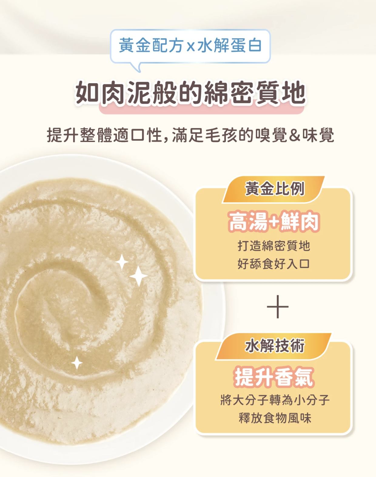 質地如肉泥般滑順濕潤,不但入口好舔、還讓貓咪愛不釋口,一口接一口停不下來!
