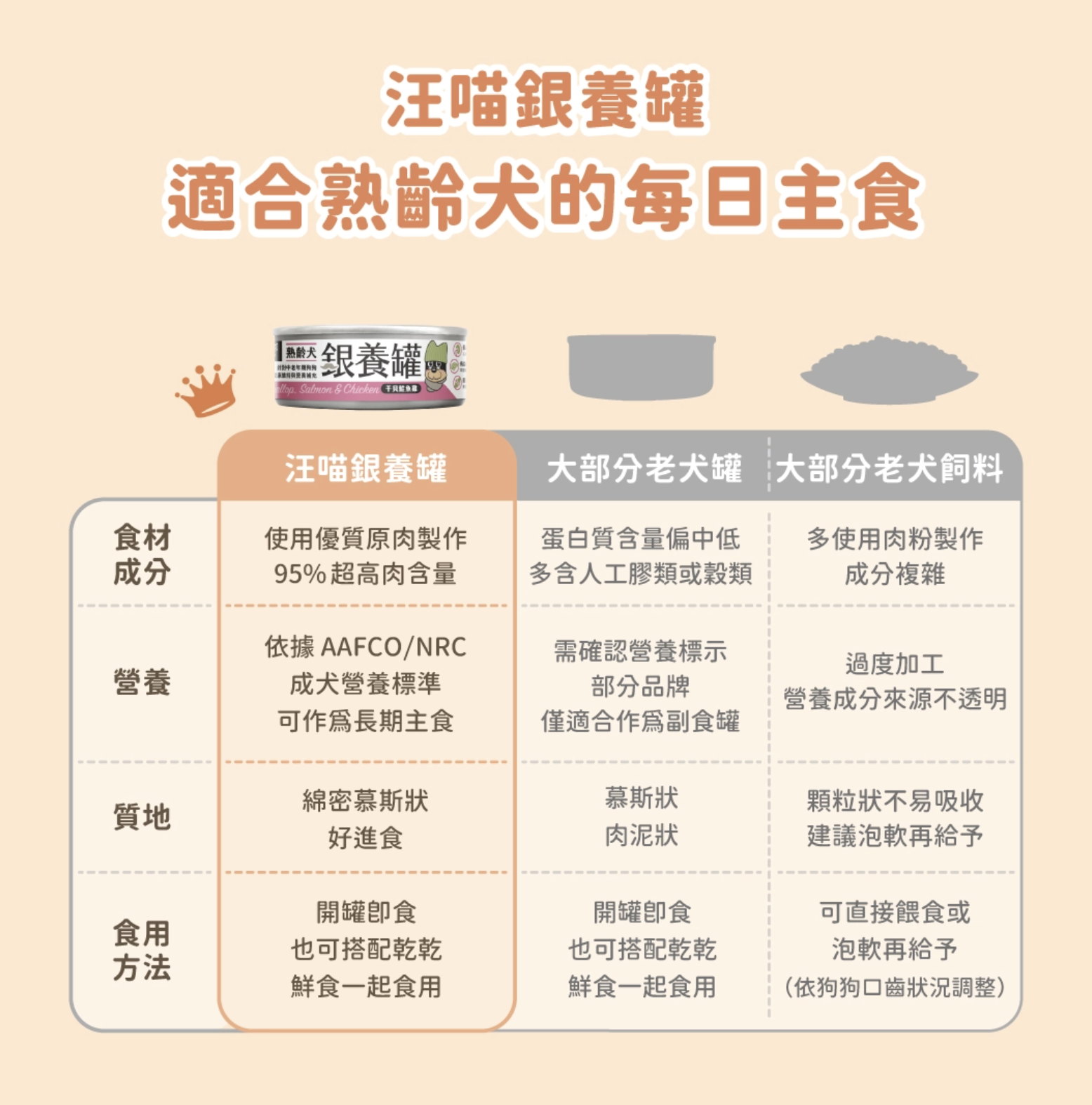 這款【熟齡犬無膠銀養主食罐】,專為步入熟齡期的毛孩設計